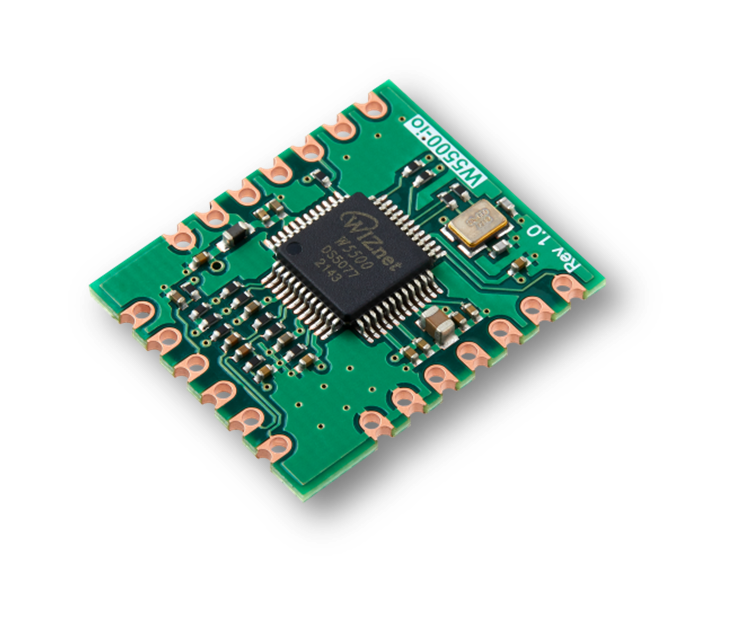 위즈네트는 3가지 모듈을 출시했었습니다. 바로 W5100S-io, W5500-io, W6100-io입니다. 각각의 모듈은 포함된 chip의 종류만 다르고 거의 모든 것이 같습니다. 모듈은 chip이 기본적으로 동작할 때 필요한 회로를 모두 포함하고 있기 때문에 사용자는 어려운 회로 설계 없이 사용이 가능합니다. 그리고 사용자의 MCU와 SPI로 연결하면 사용 가능하고 RJ45 커넥터가 포함되지 않아 매우 작은 사이즈입니다. 기본적인 Ethernet PHY 회로가 내장되어 있기 때문에 사용자는 RJ45나 트랜스포머에 연결만 하면 바로 사용할 수 있습니다.