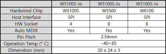 - Hardware compatible with W5100S-io, W5500-io.