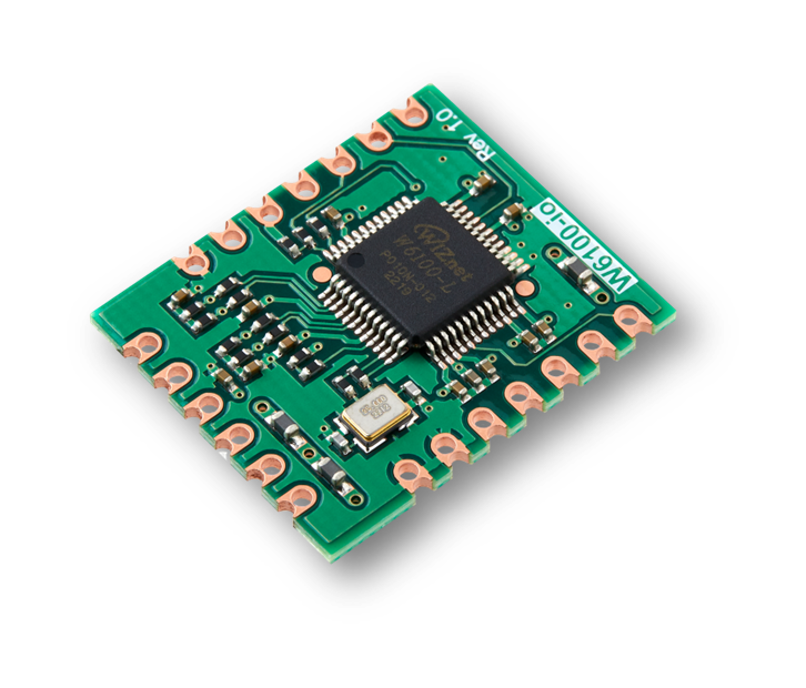 위즈네트는 3가지 모듈을 출시했었습니다. 바로 W5100S-io, W5500-io, W6100-io입니다. 각각의 모듈은 포함된 chip의 종류만 다르고 거의 모든 것이 같습니다. 모듈은 chip이 기본적으로 동작할 때 필요한 회로를 모두 포함하고 있기 때문에 사용자는 어려운 회로 설계 없이 사용이 가능합니다. 그리고 사용자의 MCU와 SPI로 연결하면 사용 가능하고 RJ45 커넥터가 포함되지 않아 매우 작은 사이즈입니다. 기본적인 Ethernet PHY 회로가 내장되어 있기 때문에 사용자는 RJ45나 트랜스포머에 연결만 하면 바로 사용할 수 있습니다.