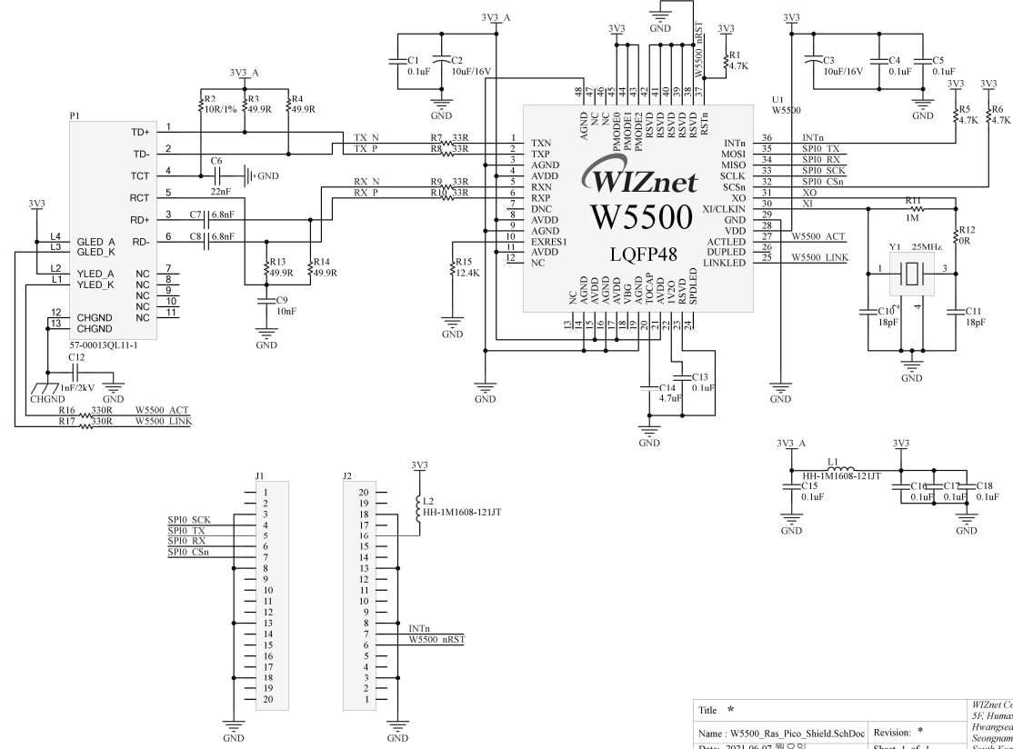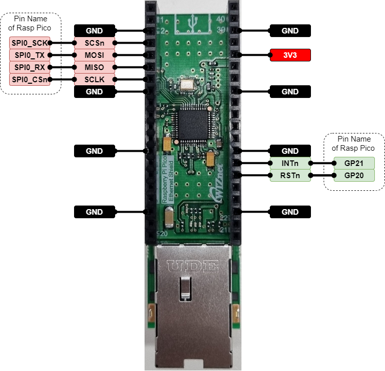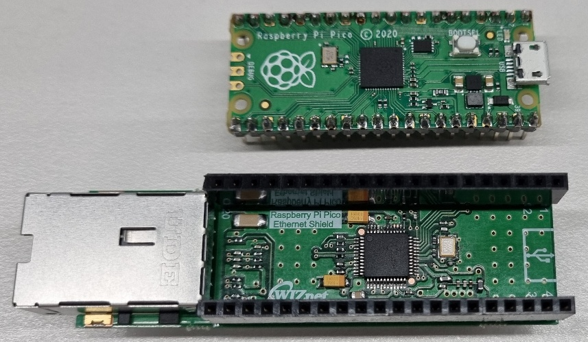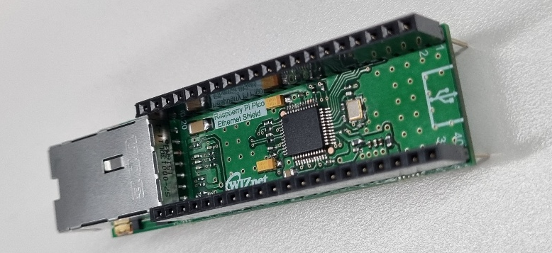 위즈네트에서는 라즈베리파이 피코의 출시에 맞춰 이더넷 쉴드 개발을 진행했다. 이 이더넷 쉴드는 W5500이 내장되었고 SPI 인터페이스를 통해 라즈베리파이 피코와 연결이 된다.