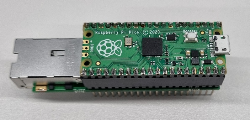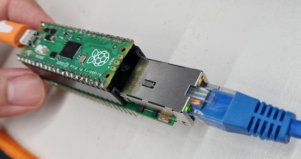 이더넷 쉴드에 라즈베리파이 피코를 꽂고 USB를 연결하고 이더넷 케이블을 연결해 봤다. RJ45의 초록색(Link) LED가 켜지고 주황색(Act) LED가 점등하는 것을 확인했다. 이더넷 쉴드의 이더넷 부분이 정상적으로 동작하는 것이다. 이제 라즈베리파이 피코에 펌웨어를 넣고 이더넷 쉴드를 동작시키면 된다.
